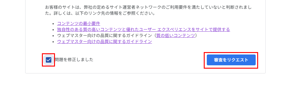 しかし、「なぜ審査に落ちたのか」については、「有用性の低いコンテンツ」としか指摘してもらえていません。
