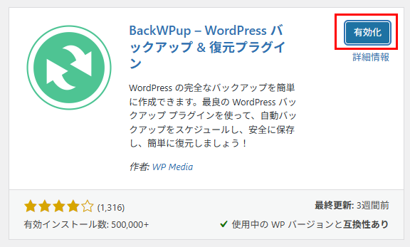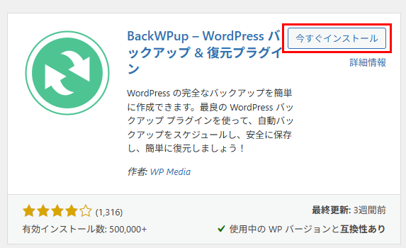 今回導入するのは「BackWPup」。WordPressのバックアップを取ってくれるすぐれモノです。