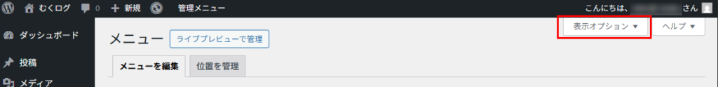 まずは、ヘッダーメニューを設定した画面の上部にある、「表示オプション」をクリックしてください。