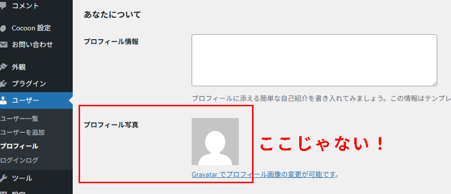不正解、というわけではありませんが、Gravatarでアカウント登録して……初期設定して……と設定が煩雑になってしまいますので、Cocoonを利用している方は、画面最下部の「プロフィールを更新」ボタンの近くにある「プロフィール画像」のところで設定しましょう。