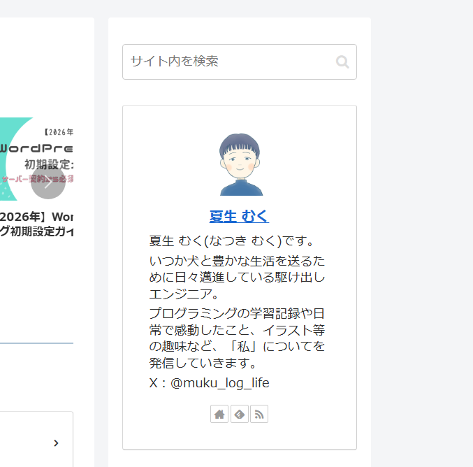 さて、プロフィール設定を行ったことで、サイドバーにプロフィールを表示させたい場合の中身が整いました。