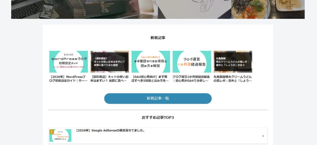 ちなみに、トップページのメインエリアをカスタマイズする手順については、以下の記事で解説しています。ご興味のある方はご覧ください。