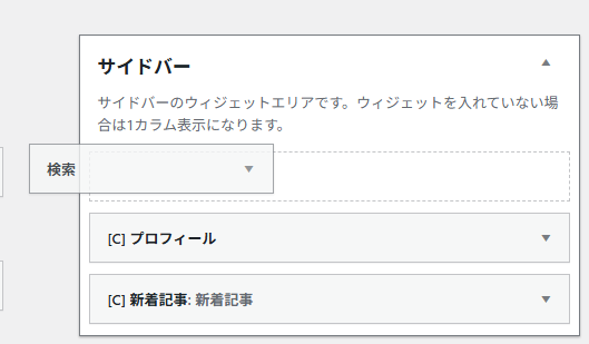 ウィジェット編集画面の左側にある「利用できるウィジェット」一覧の中からウィジェットを選び、「サイドバー」か「サイドバースクロール追従」の中にドラッグ&ドロップしていきましょう。