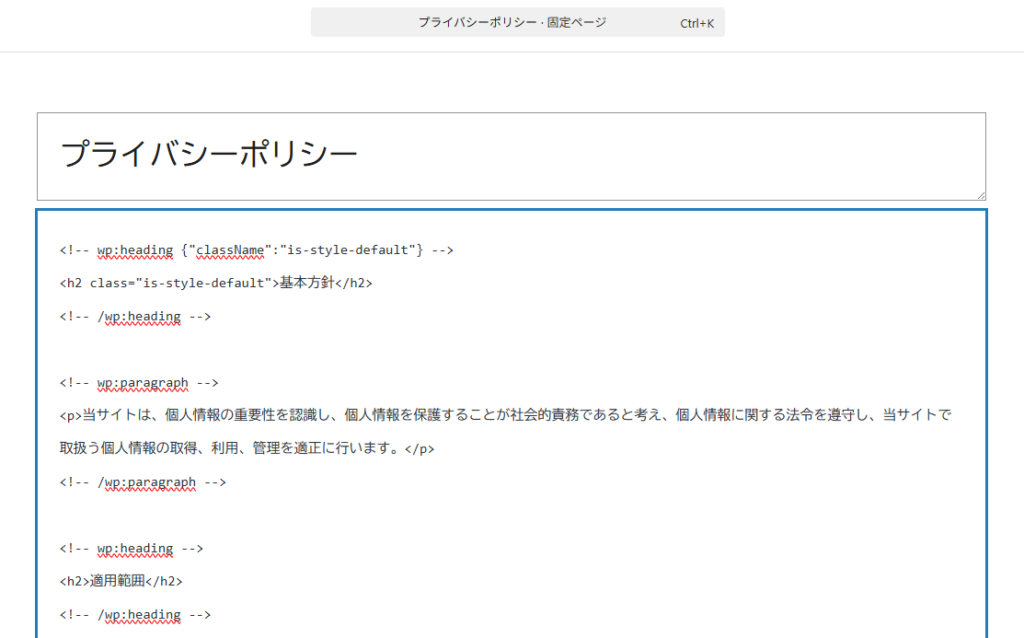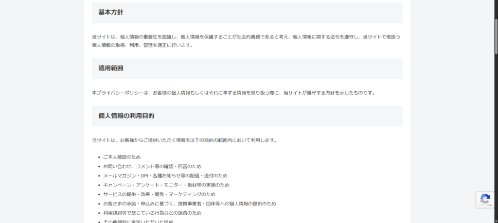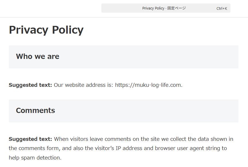 するとプライバシーポリシーページの見た目が以下のようになります。