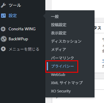 固定ページ一覧にある「Privacy Policy」を使う
