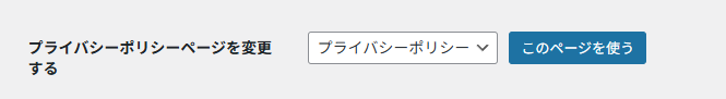 「プライバシーポリシーページを変更する」のセレクトボックスに先ほど編集した固定ページのタイトル(プライバシーポリシー)が入っていたら正しく設定されています。